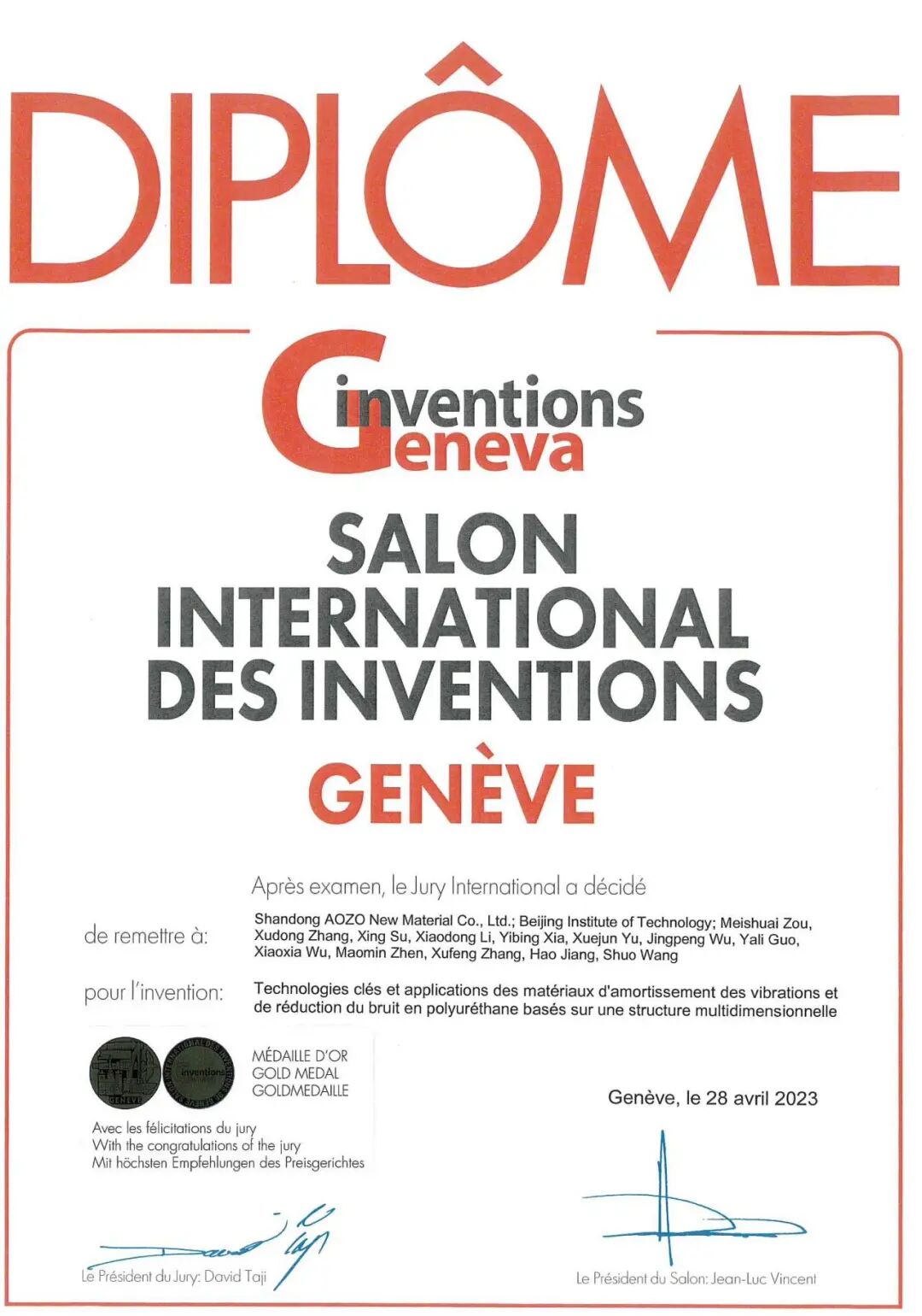奥卓新材掌握关键核心技术,在原料配方和制造工艺上实现完全自主可控,技术水平国际领先。获批建设“多维结构减振与防护材料山东省工程研究中心”“北京理工大学功能高分子材料概念验证平台”“枣庄市功能高分子材料研究与应用重点实验室”等研发平台,相关成果荣获“山东省技术发明一等奖”“日内瓦国际发明展特别嘉许金奖”“中国发明协会一等奖”“环保技术进步一等奖”等多个奖项。构建了“进口替代+原创引领”的产品谱系,满足多领域、多场景应用需求,实现了从改进型创新到突破型创新的根本性跨越。